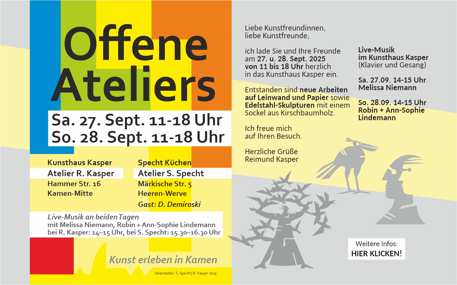 Das Kunsthaus Kasper in Kamen-Mitte feiert sein 25jähriges Jubiläum. Reimund Kasper präsentiert in einer Sonderausstellung neue Arbeiten und freut sich auf Ihr Kommen.